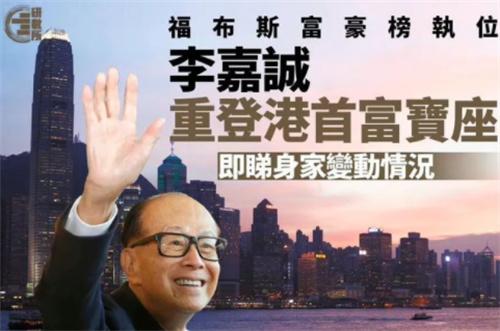 根據2月23日的最新信息,《福布斯》公布了2023年香港50大富豪榜,關于此次富豪榜排名,李嘉誠再次登頂香港首富寶座,李嘉欣是中國大部分人都比較熟悉的一名商人,曾經多次被排在富豪榜首位,是長和系創辦人,這次又以390億美元的身家,登頂香港富豪榜首位,其實從上個世紀90年代開始,李嘉誠就已經有20多次都登上了香港首富的寶座,李嘉誠也對此習以為常。