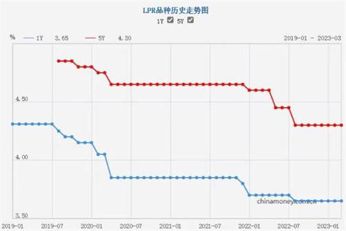 中國人民銀行授權全國銀行間同業拆借中心公布,2023年3月20日貸款市場報價利率(LPR)為:一年期LPR為3.65%,五年期以上LPR為4.3%,均與上月保持一致。