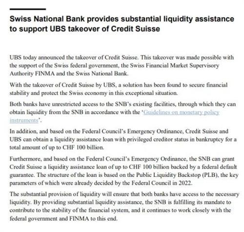 北京時間3月20日凌晨2:30,瑞士政府召開新聞發布會,瑞士央行宣布,瑞士央行今天將宣布收購瑞信。瑞士央行將提供大量流動性緩沖,已支持瑞銀收購瑞士信貸。
