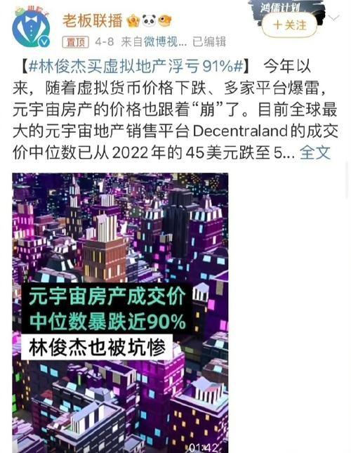 據媒體的報道,在2022年11月份,知名歌手林俊杰就曾經以12.3萬美元在Decentraland上買了三塊虛擬地產,伴隨著元宇宙這一方面出現虧損之后,導致鄰俊杰所購買的這三塊虛擬地產,目前的價值僅僅只為1萬美元,浮虧約為91%。