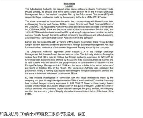 近日,印度執法局發布了正式通告,指控小米公司涉嫌違反印度《外匯管理法》向外國實體非法轉移資金,目前已經向小米技術,印度私人有限公司和小米印度分公司以及三家銀行發出了正式通知,該通知中顯示,印度當局此前扣押小米約合人民幣48億元的資金將會在此次通告發布后正式沒收,這則消息讓很多人認識到印度當局的野心,但是人們還是低估了印度政府的下限。
