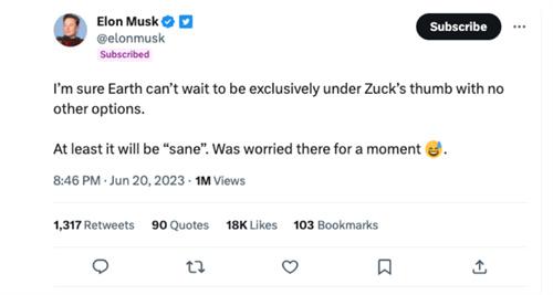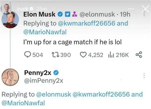 近日,扎克伯格旗下的Mate公司開發(fā)了一個(gè)類似于推特的新型社交軟件,在公司的內(nèi)部會(huì)議中,還無情的對(duì)馬斯克以及推特進(jìn)行吐槽。馬斯克開始發(fā)布推文稱Meta公司是一個(gè)抄襲的慣犯,在二人斗嘴的時(shí)候馬斯克來了一句即便來一場(chǎng)鐵籠戰(zhàn)也是愿意的。扎克伯格回應(yīng)將地址發(fā)給他,在眾目睽睽之下,馬斯克便無法再退縮了,只能夠建議在拉斯維加斯八角籠進(jìn)行格斗。
