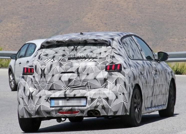 車尾部分,我們可以看到和前方相呼應的獅爪式燈組設計。此外測試車型尾部采納了雙出式排氣,同時配備有較為運動的后擾流板,不排除是GTi版本車型的可能。