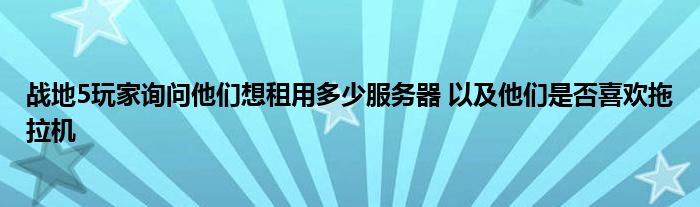租用可以設置自己的游戲規則的私人服務器的能力已經成為該系列歷史上大部分戰場游戲的標志,在所有游戲中都可以在PC上使用,包括Battlefield:Hardline。戰場1中省略了它,但后來又添加了,粉絲們一直渴望看到它回到戰地五號。