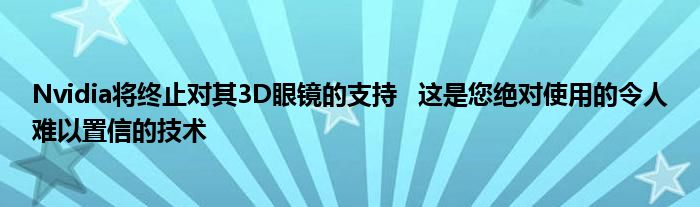還記得3D電視,電影,現(xiàn)場體育賽事和眼鏡嗎?是的,嗯,Nvidia意識到你也沒有,因此,它正在拉動對3D Vision的支持,3D Vision是3D眼鏡游戲的平臺。