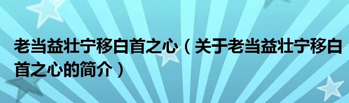 大家好,老當(dāng)益壯寧移白首之心,關(guān)于老當(dāng)益壯寧移白首之心的簡(jiǎn)介很多人還不知道,現(xiàn)在讓我們一起來看看吧!