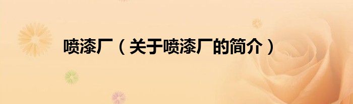 本文關于噴漆廠的簡介就講解完畢,希望對大家有所幫助。