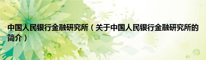 本文關于中國人民銀行金融研究所的簡介就講解完畢,希望對大家有所幫助。