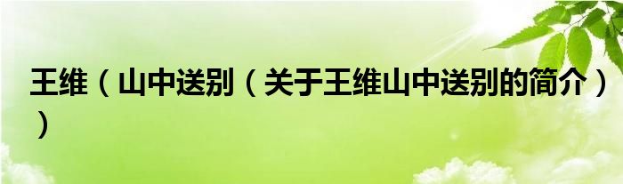 本文關于王維 山中送別的簡介就講解完畢,希望對大家有所幫助。