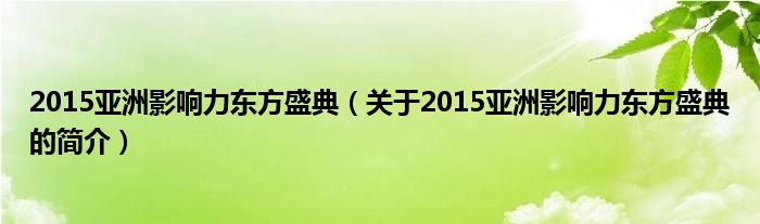 本文關(guān)于2015亞洲影響力東方盛典的簡介就講解完畢,希望對大家有所幫助。