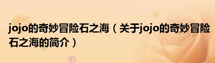 本文關于jojo的奇妙冒險石之海的簡介就講解完畢,希望對大家有所幫助。