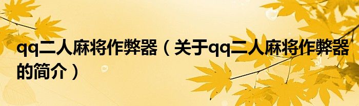 本文關于qq二人麻將作弊器的簡介就講解完畢,希望對大家有所幫助。