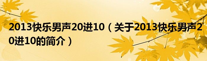 本文關于2013快樂男聲20進10的簡介就講解完畢,希望對大家有所幫助。