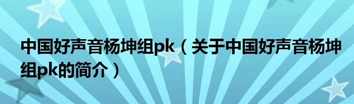本文關(guān)于中國好聲音楊坤組pk的簡介就講解完畢,希望對大家有所幫助。