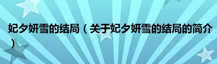 本文關于妃夕妍雪的結局的簡介就講解完畢,希望對大家有所幫助。