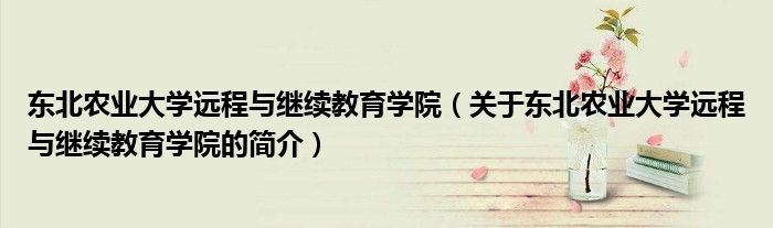 本文關于東北農業大學遠程與繼續教育學院的簡介就講解完畢,希望對大家有所幫助。