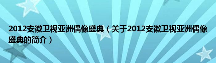 本文關于2012安徽衛視亞洲偶像盛典的簡介就講解完畢,希望對大家有所幫助。