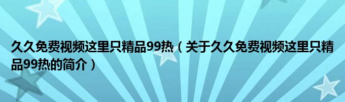 本文關(guān)于久久免費視頻這里只精品99熱的簡介就講解完畢,希望對大家有所幫助。