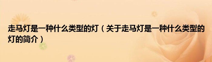 本文關于走馬燈是一種什么類型的燈的簡介就講解完畢,希望對大家有所幫助。