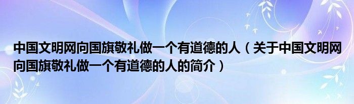 本文關于中國文明網向國旗敬禮做一個有道德的人的簡介就講解完畢,希望對大家有所幫助。