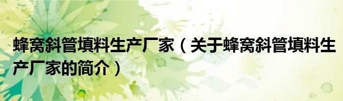 本文關于蜂窩斜管填料生產廠家的簡介就講解完畢,希望對大家有所幫助。