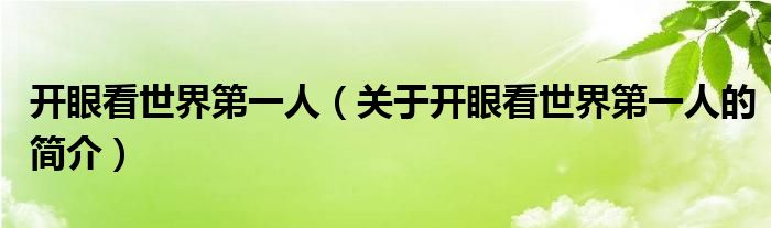大家好,開眼看世界第一人,關于開眼看世界第一人的簡介很多人還不知道,現在讓我們一起來看看吧!