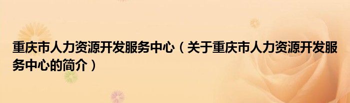 本文關于重慶市人力資源開發服務中心的簡介就講解完畢,希望對大家有所幫助。