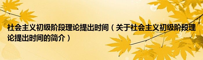 本文關(guān)于社會(huì)主義初級(jí)階段理論提出時(shí)間的簡介就講解完畢,希望對大家有所幫助。