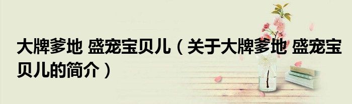 大家好,大牌爹地 盛寵寶貝兒,關于大牌爹地 盛寵寶貝兒的簡介很多人還不知道,現在讓我們一起來看看吧!