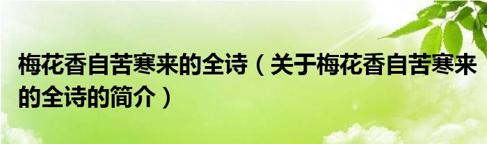 本文關于梅花香自苦寒來的全詩的簡介就講解完畢,希望對大家有所幫助。