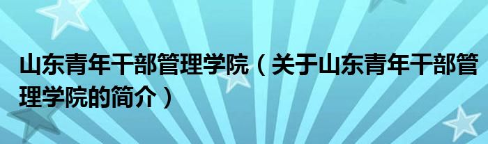 本文關于山東青年干部管理學院的簡介就講解完畢,希望對大家有所幫助。