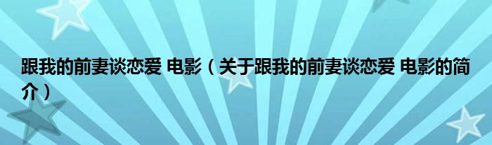 本文關于跟我的前妻談戀愛 電影的簡介就講解完畢,希望對大家有所幫助。