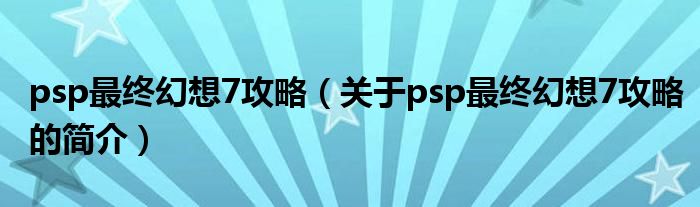 本文關于psp最終幻想7攻略的簡介就講解完畢,希望對大家有所幫助。