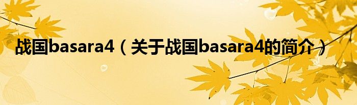 本文關(guān)于戰(zhàn)國(guó)basara4的簡(jiǎn)介就講解完畢,希望對(duì)大家有所幫助。
