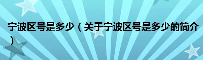 本文關于寧波區號是多少的簡介就講解完畢,希望對大家有所幫助。