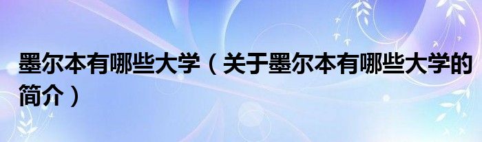 本文關(guān)于墨爾本有哪些大學(xué)的簡介就講解完畢,希望對大家有所幫助。