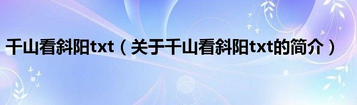 本文關(guān)于千山看斜陽txt的簡介就講解完畢,希望對(duì)大家有所幫助。