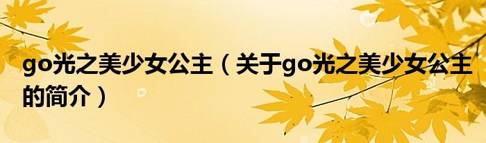 本文關(guān)于go光之美少女公主的簡介就講解完畢,希望對大家有所幫助。