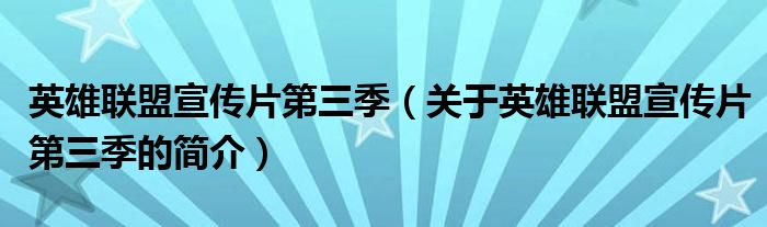 本文關(guān)于英雄聯(lián)盟宣傳片第三季的簡(jiǎn)介就講解完畢,希望對(duì)大家有所幫助。