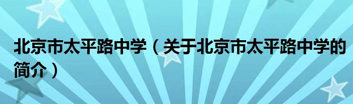 本文關于北京市太平路中學的簡介就講解完畢,希望對大家有所幫助。