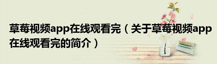 本文關(guān)于草莓視頻app在線(xiàn)觀(guān)看完的簡(jiǎn)介就講解完畢,希望對(duì)大家有所幫助。
