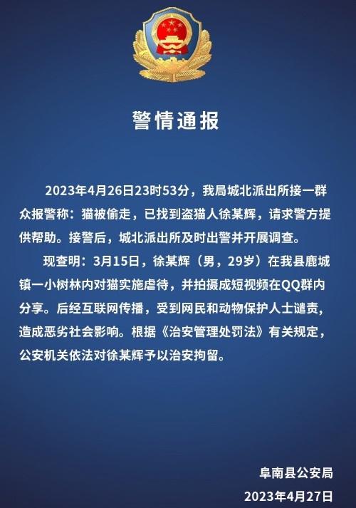 近日,安徽阜南縣發生了一起引人注目的盜貓事件。據當地公安局通報,一名男子徐某輝被指控盜竊了一只貓咪,并在一小樹林內對其進行虐待,并將虐待過程拍下來在QQ群內分享。這起事件引起了社會的廣泛關注和譴責。