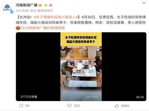 據(jù)報(bào)道,4月30日中午,一名女子與一男子在定西市一家火鍋店就餐。突然間,女子情緒失控,將火鍋中的熱油潑向同桌男子。男子被燙傷后立即離開,而女子則沖到鄰桌,將火鍋潑向了無(wú)辜的顧客。多名顧客被燙傷,其中一人傷情嚴(yán)重,被緊急送往醫(yī)院進(jìn)行治療。