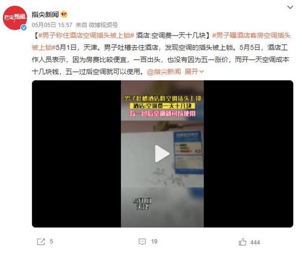 近日,一則男子吐槽住酒店的消息引起了網友的熱議。男子稱他去住酒店時發現空調插頭被上鎖,對此表示非常不滿。而酒店工作人員則表示,因為房費比較便宜,一百多元,開一天空調成本就需要十幾元,所以才會采取這樣的措施。這一事件也引發了網友的討論和評論。
