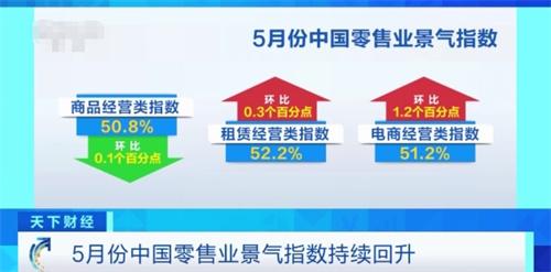 中國商業聯合會發布的數據顯示,5月份中國零售業景氣指數為51.1%,較上月微升0.3個百分點,連續5個月保持在榮枯線以上,展現了零售業全面復蘇的趨勢,同時也進一步提升了企業的經營信心。