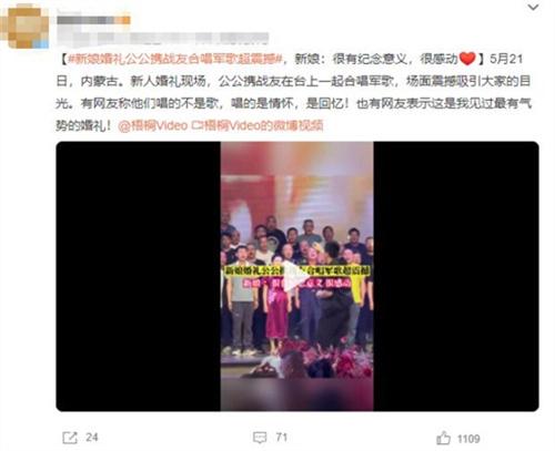 有網(wǎng)友在評(píng)論中稱贊他們的表演不僅僅是歌曲的演唱,更是情感的傳遞和回憶的共鳴。這些軍歌不僅代表著他們作為軍人的榮耀和責(zé)任,也承載著他們對(duì)國(guó)家、對(duì)親人的深情厚意。這樣的合唱不僅是一種婚禮的獨(dú)特方式,更是一種家庭的傳承和情感的傳遞。
