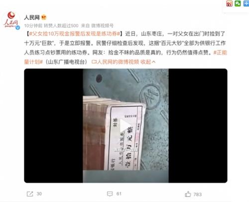 最近,山東棗莊發生了一起父女撿到十萬元現金并立即報警的事件。然而,警方在仔細檢查后發現這些鈔票并非真實貨幣,而是銀行工作人員用于練習點鈔的練功券。盡管所撿的錢財實為虛設,但父女的誠實行為仍然值得贊揚。網友紛紛稱贊他們的拾金不昧品質,這種道德表現令人敬佩。