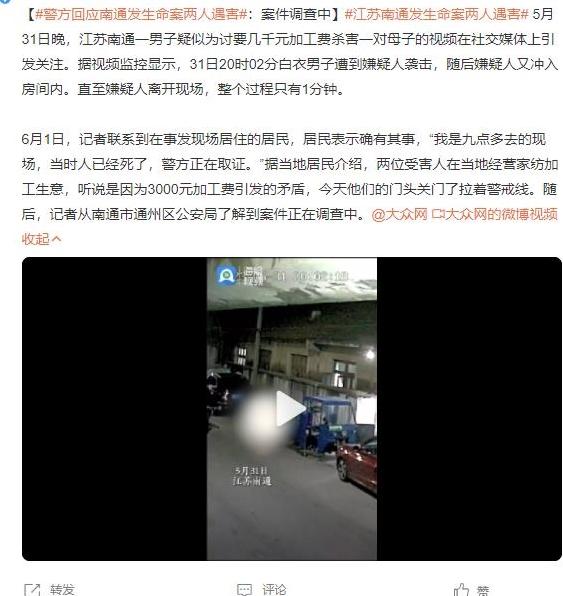 記者于6月1日聯系到了事發地的居民,他們證實了這一事件的真實性。一位居民表示:“我在九點多的時候到達現場,那時候已經發生了命案,警方正在進行取證工作。”據當地居民透露,受害者是在當地經營家紡加工生意的,據傳因為3000元的加工費引發了矛盾。如今,他們的店門緊閉,并被拉起了警戒線。南通市通州區公安局表示,目前正在對此案展開調查。