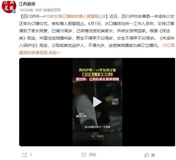 【四川瀘州一未成年少女舉辦訂婚儀式,違反法定婚齡引發爭議】