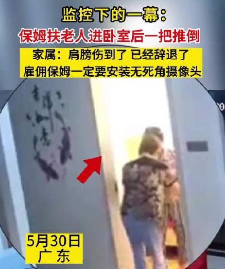 5月30日,廣東發生了一起引起公眾關注的事件。一名網友發布了一段監控視頻,視頻中顯示一位保姆扶著一位老人進入臥室,在抵達床邊時,保姆突然將老人推倒在床上。事后,該名網友稱老人的肩膀受傷,而且老人之前也曾受到過虐待。盡管沒有造成嚴重傷害,但家屬對保姆的行為表示不滿,隨后決定辭退保姆。